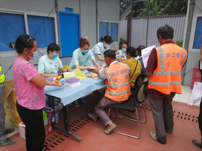 兩江建設公司重慶北站南廣場地方配套樞紐適應性改造工程項目部聘請具有體檢資質服務的醫(yī)療機構到項目開展本年度員工免費健康體檢。