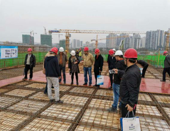 會前,各參會人員前往項目現場參觀交流學習EPC施工模式和裝配式建筑,學校項目部的工作人員具體介紹了裝配箱,疊合板,ALC條板,鋼筋桁架板,高精砌塊等裝配材料施工安裝和施工工藝,施工單位技術人員通過PPT對項目裝配式施工中具體的操作實施過程的質量控制方法作了詳細介紹。向萍副總經理要求公司技術部門的員工勤學習新工藝、新技術、新規范、新要求,要把兩江建設的口碑做大、做好。