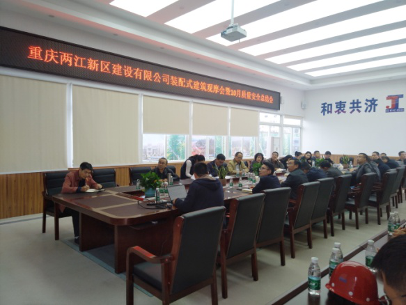 公司向萍副總經理組織開展觀摩裝配式建筑施工工藝并召開10月份安全例會