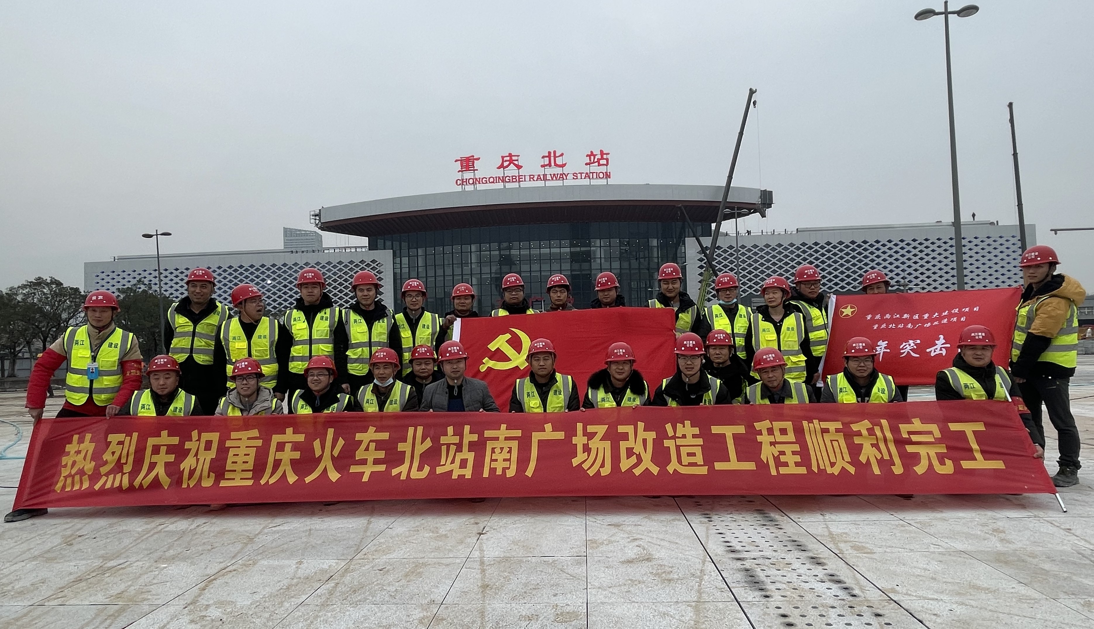 作為兩江新區今年首批開工的重點民生項目之一,重慶北站南廣場改造工程建設任務重、工期緊。從臨設選址到項目部建成,各級領導多次到現場調研指導工作。兩江建設公司接到該項目建設任務后,公司領導高度重視,組建了強有力的項目班子,特別在項目部成立了臨時黨支部,發揮支部的戰斗堡壘作用。