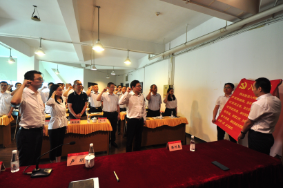 隨后,全體新黨員和老黨員整齊肅立,面向黨旗,在黨委書記盧明同志的帶領下,進行莊嚴宣誓和重溫入黨誓詞,進一步強化黨員意識,增強黨性。