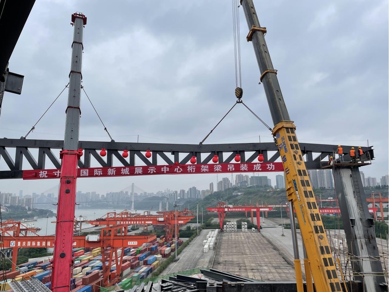 重慶寸灘國際新城展示中心項目屋面桁架順利完成吊裝工作