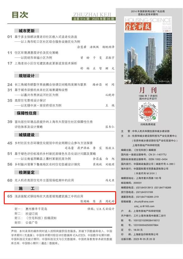 近日,由國家住建部主管,住建部科技與產業(yè)化發(fā)展中心、上海市房地產科學研究院主辦的學術性期刊——《住宅科技》刊發(fā)了由重慶兩江新區(qū)建設有限公司副總工程師、教授級高工陳閣琳牽頭完成的《淺談裝配式鋼結構在大高差坡地建筑施工中的應用》論文。