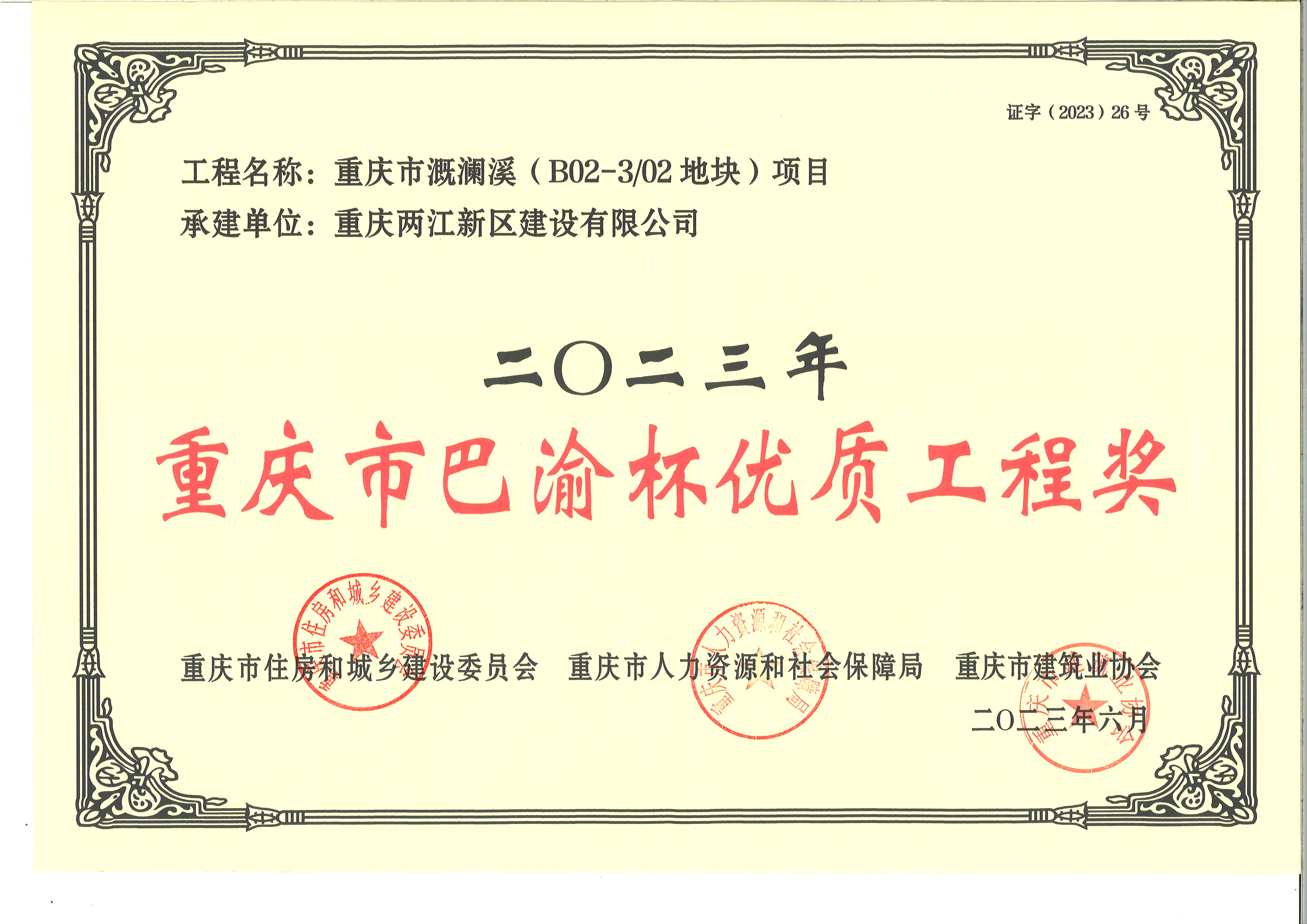 溉瀾溪住宅項目獲得巴渝杯優(yōu)質工程獎