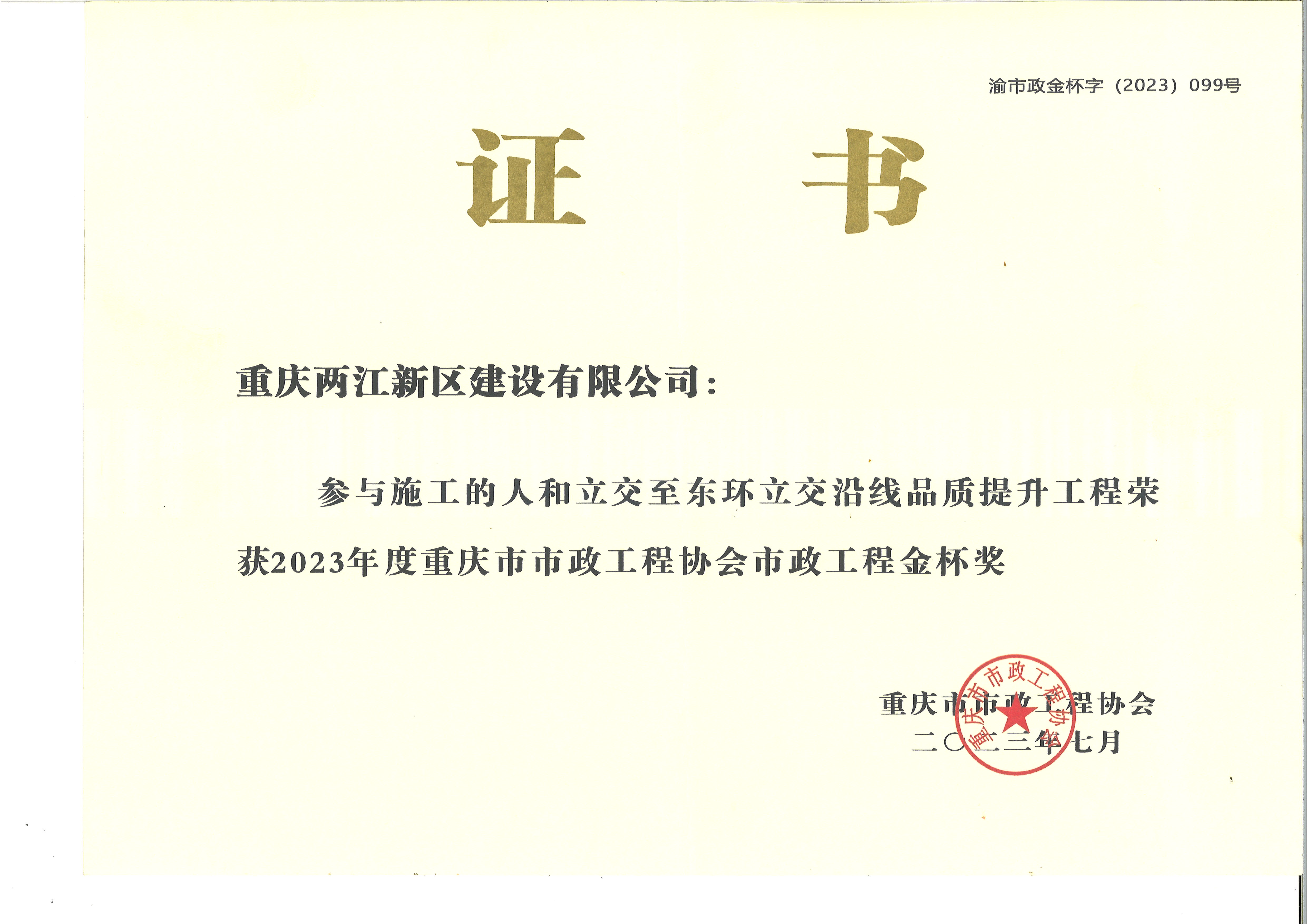 重慶市市政工程協會市政工程金杯獎